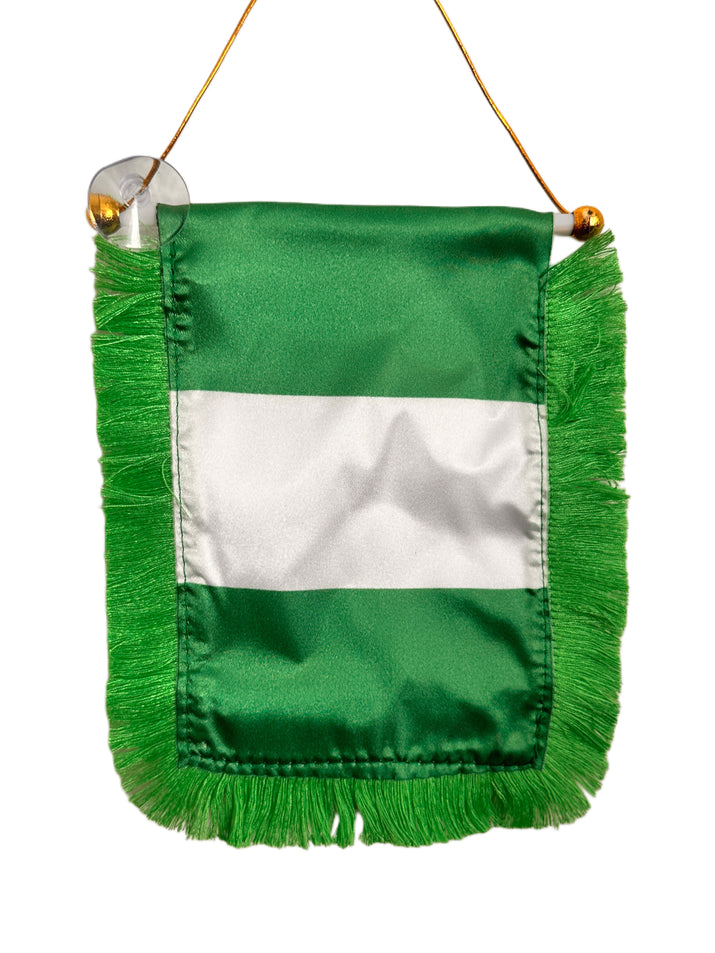 Nigeria Flag Banner - 4x6 Fringy Window Hanging Flag - Mini Flag Banner & Car Rearview Mirror Decor - Fringed & Double Sided - Hanging Flag with Suction Cup