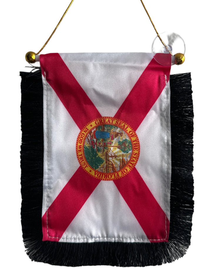 Florida Flag Hanging Banner - 4x6 Fringy Window Hanging Flag - Mini Flag Banner & Car Rearview Mirror Decor - Fringed & Double Sided - Hanging Flag with Suction Cup