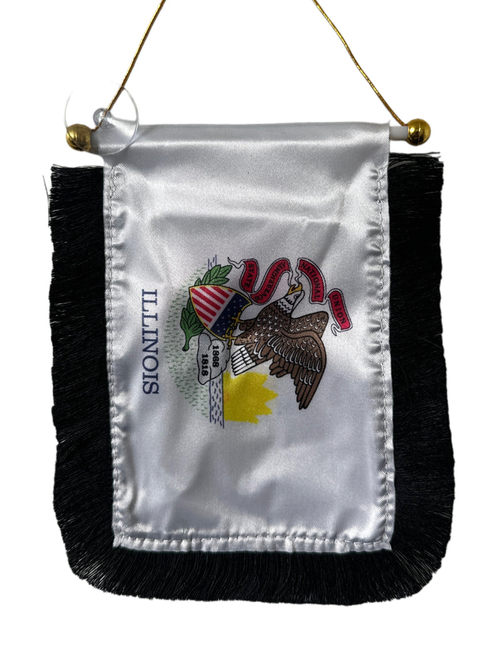 Illinois Flag Hanging Banner - 4x6 Fringy Window Hanging Flag - Mini Flag Banner & Car Rearview Mirror Decor - Fringed & Double Sided - Hanging Flag with Suction Cup