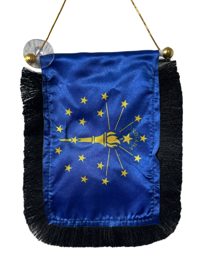 Indiana Flag Hanging Banner - 4x6 Fringy Window Hanging Flag - Mini Flag Banner & Car Rearview Mirror Decor - Fringed & Double Sided - Hanging Flag with Suction Cup