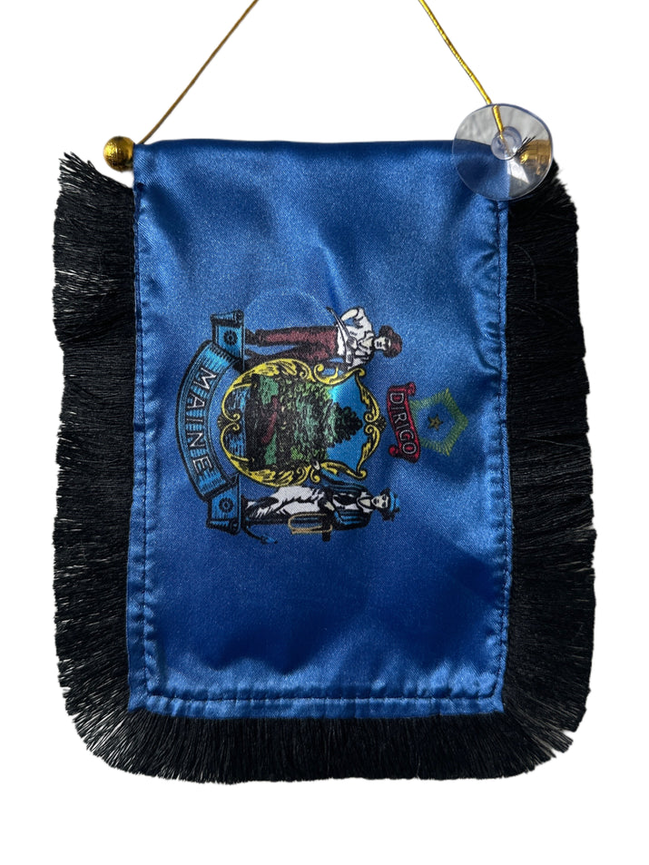 Maine Flag Hanging Banner - 4x6 Fringy Window Hanging Flag - Mini Flag Banner & Car Rearview Mirror Decor - Fringed & Double Sided - Hanging Flag with Suction Cup