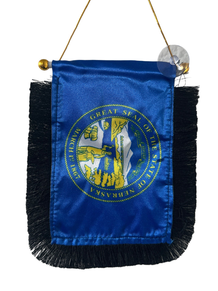 Nebraska Flag Hanging Banner - 4x6 Fringy Window Hanging Flag - Mini Flag Banner & Car Rearview Mirror Decor - Fringed & Double Sided - Hanging Flag with Suction Cup