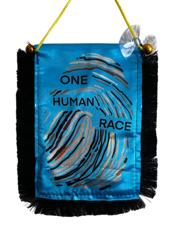 One Human Race Hanging Banner - 4x6 Fringy Window Hanging Flag - Mini Flag Banner & Car Rearview Mirror Decor - Fringed & Double Sided - Hanging Flag with Suction Cup