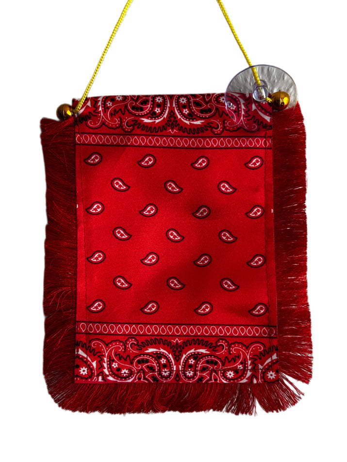 Red Paisley Hanging Banner - 4x6 Fringy Window Hanging Flag - Mini Flag Banner & Car Rearview Mirror Decor - Fringed & Double Sided - Hanging Flag with Suction Cup