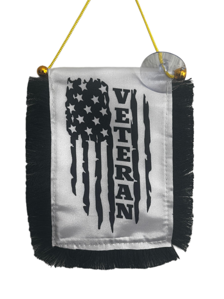 Veteran Hanging Banner - 4x6 Fringy Window Hanging Flag - Mini Flag Banner & Car Rearview Mirror Decor - Fringed & Double Sided - Hanging Flag with Suction Cup