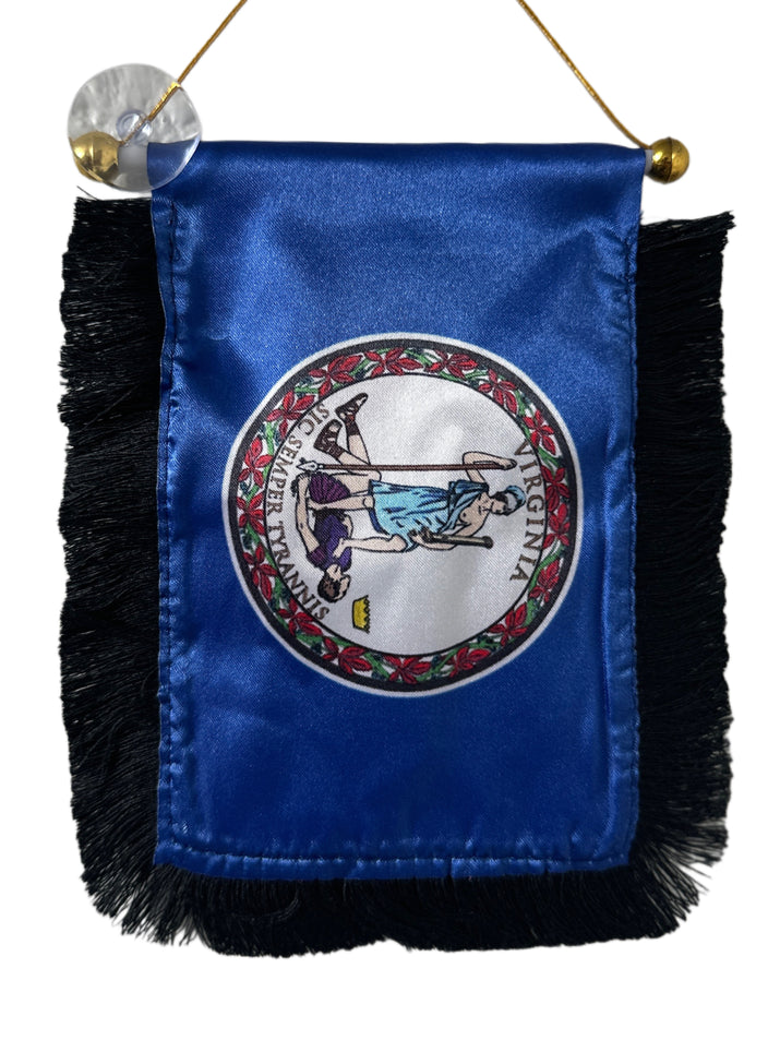 Virginia Flag Hanging Banner - 4x6 Fringy Window Hanging Flag - Mini Flag Banner & Car Rearview Mirror Decor - Fringed & Double Sided - Hanging Flag with Suction Cup