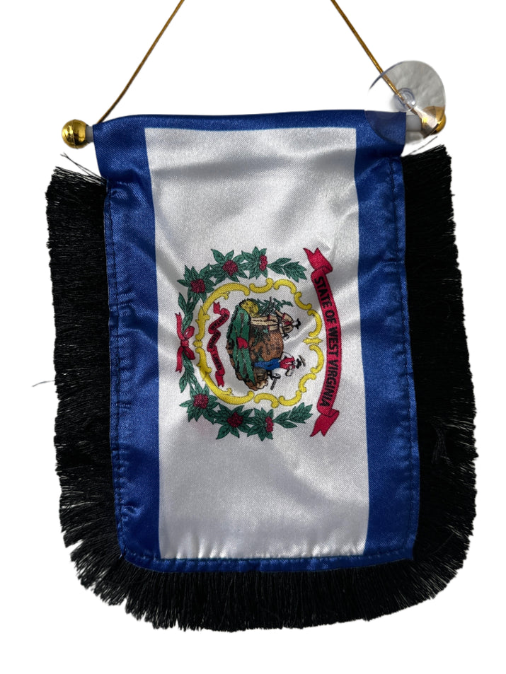 West Virginia Flag Hanging Banner - 4x6 Fringy Window Hanging Flag - Mini Flag Banner & Car Rearview Mirror Decor - Fringed & Double Sided - Hanging Flag with Suction Cup